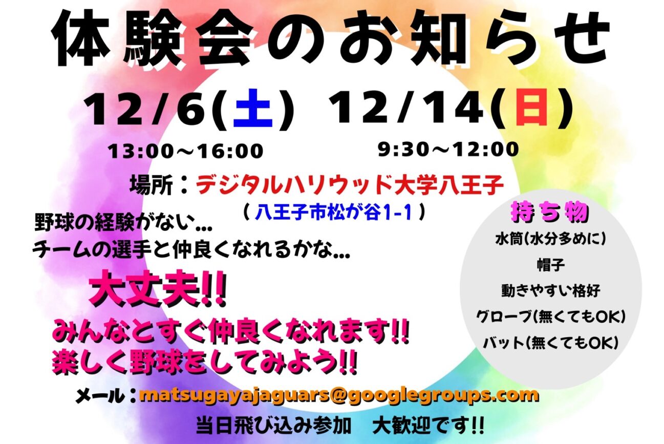 ◯9:30〜11:30 滝が原6or7面にて練習 ※B面付近が空いたら変更の可能性あり